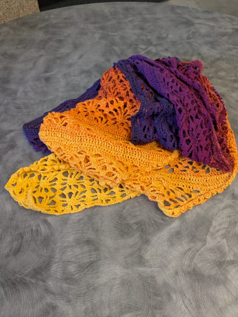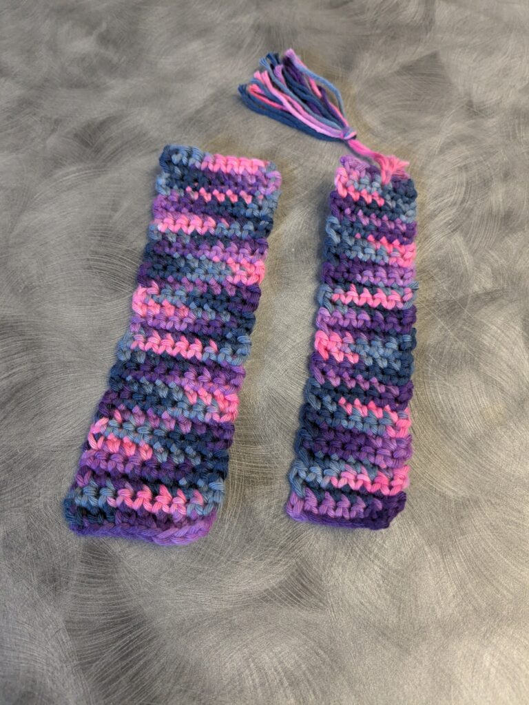 Pictured above is a scarf Nicole Myers made and examples of the crochet bookmarks fair attendees will be able to create with her.